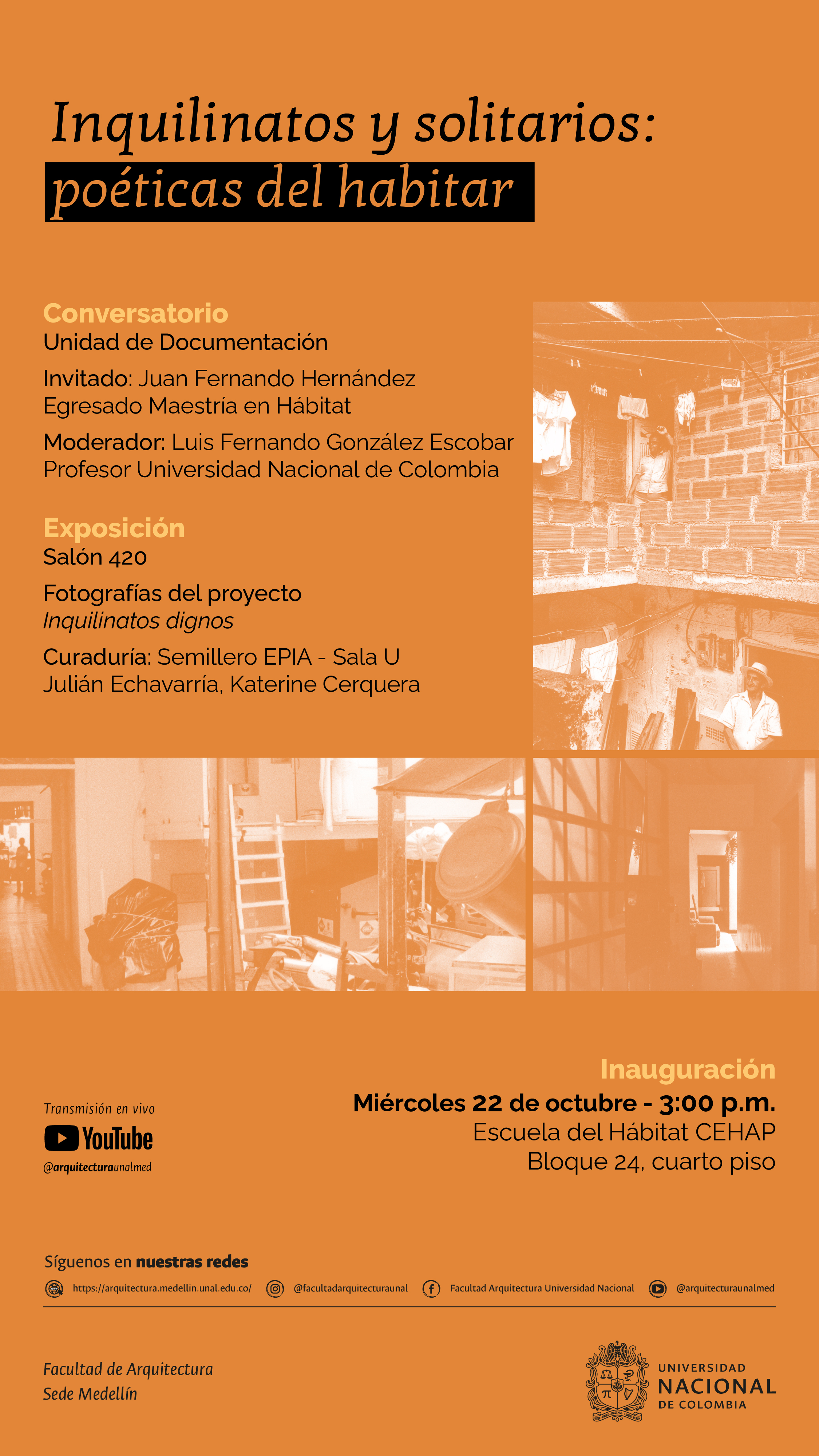 Invitación Conversaciones del Hábitat. En el marco de los conversatorios sobre hábitat, que se vienen realizando desde la Unidad de Documentación, muy cordialmente los estamos invitando al conversatorio: "Inquilinatos y solitarios: Poéticas del... Leer más
